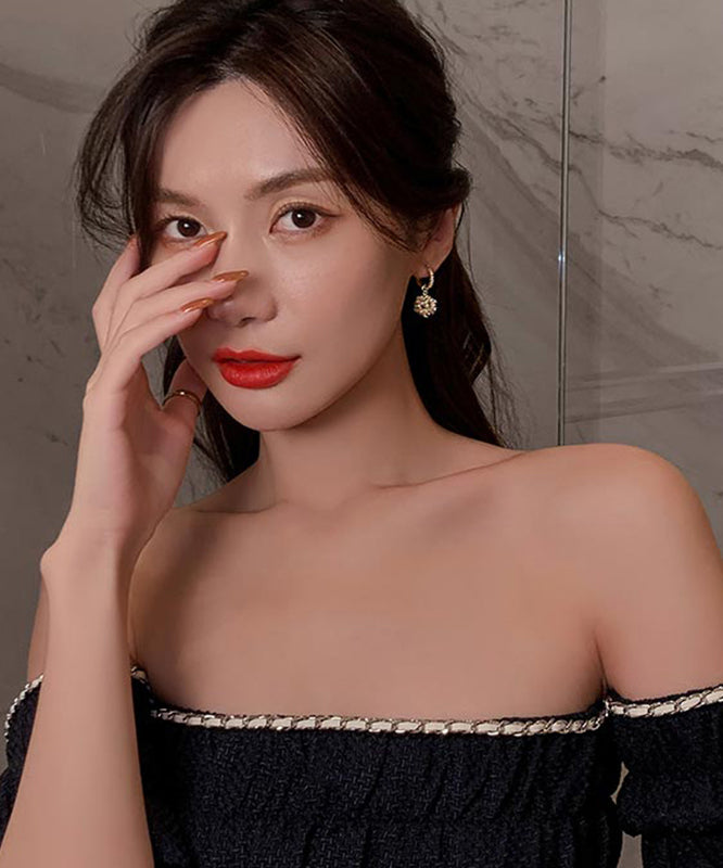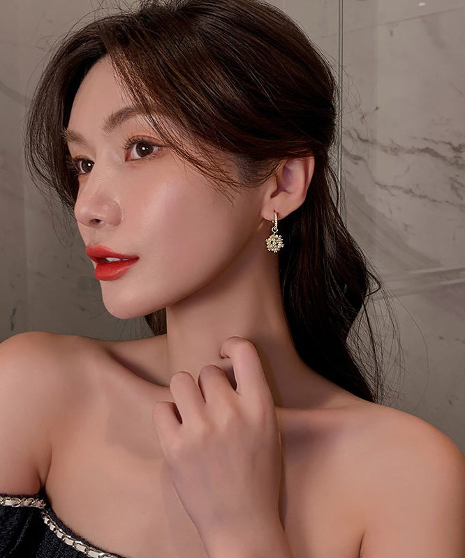 Zircon Copper Pearl Crystal Stylish Earrings Gold Alloy Drop