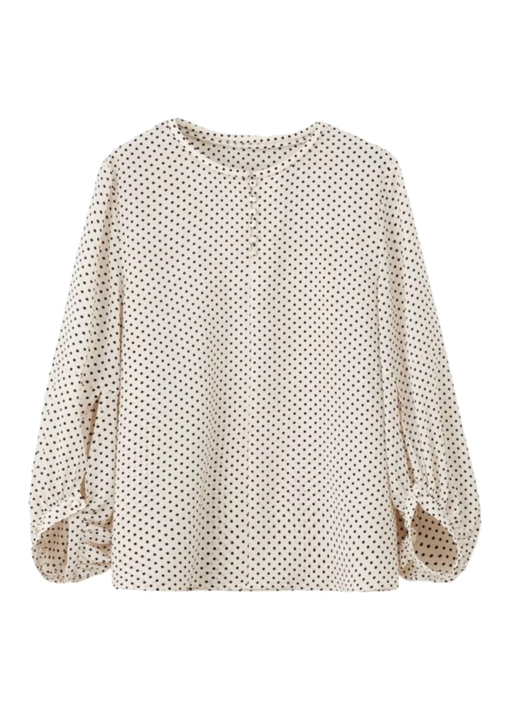 Imagine if you could be satisfied and content with your purchase. That can very much be your reality with the Fashion Apricot Dot Print Chiffon Top Long Sleeve WW003.