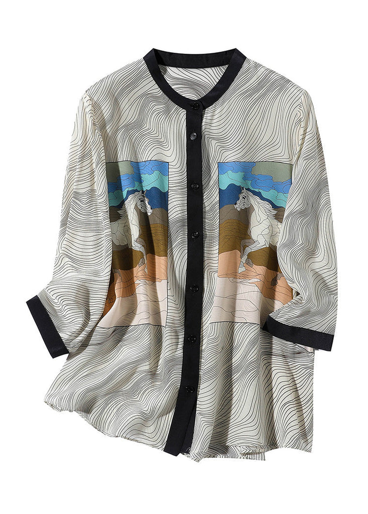 Imagine if you could be satisfied and content with your purchase. That can very much be your reality with the Fashion Apricot O-Neck Print Button Silk Shirt Long Sleeve LY1013.
