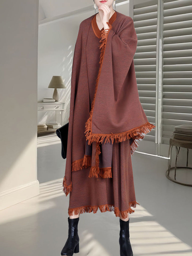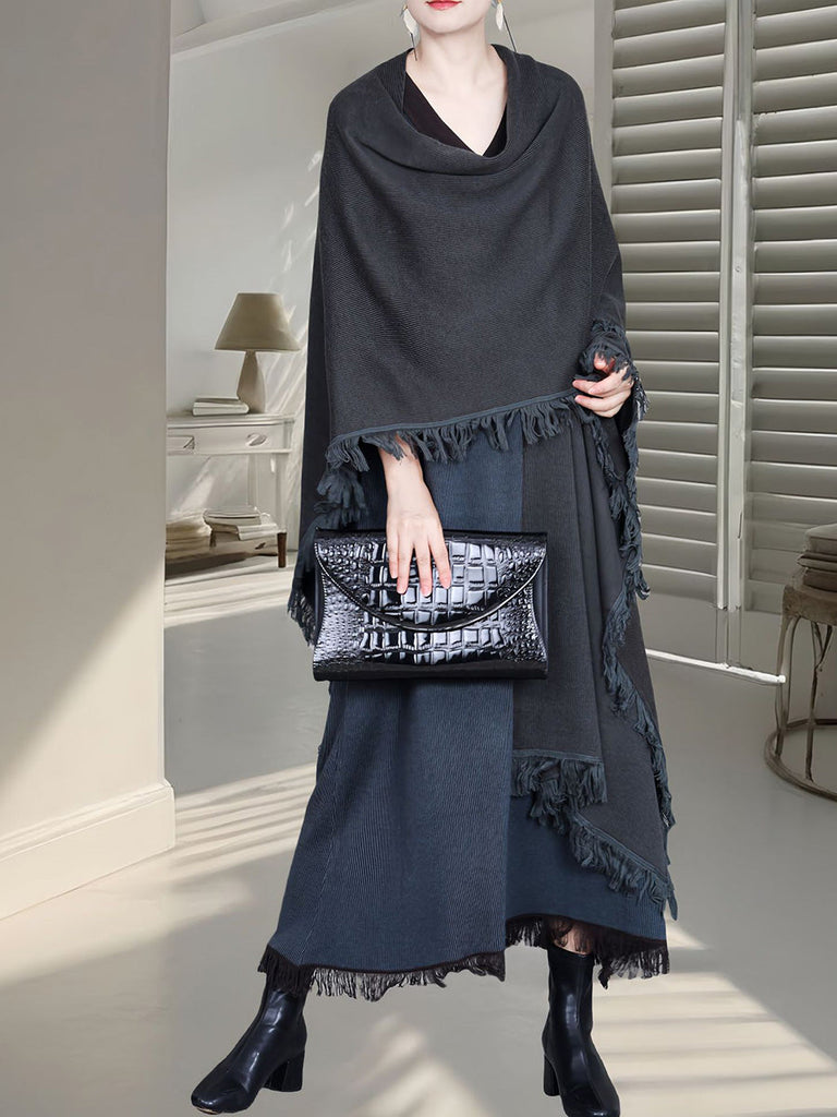 Women Fashion Colorblock Tassel Wool Knit Cardigan Shawl AH1074