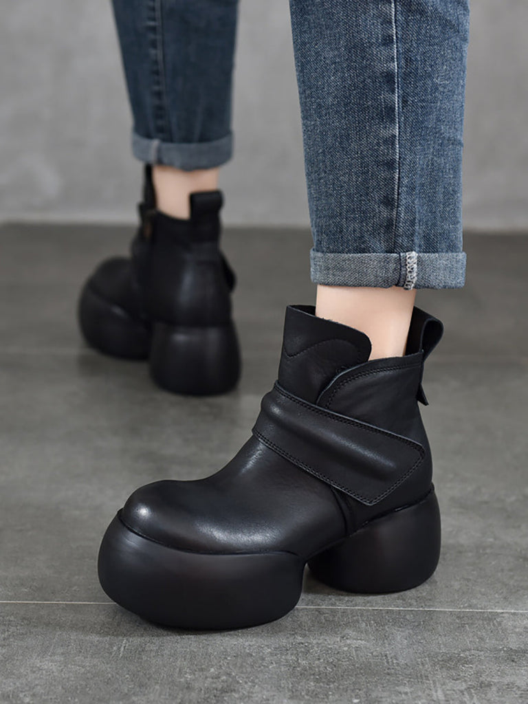Elevate your style with our Women Fashion Soft Genuine Leather Platfrom Ankle Boots. Crafted from the finest leather, these boots exude elegance and luxury. The platform design adds height while providing maximum comfort. Perfect for any occasion, these boots will take your outfit to the next level.