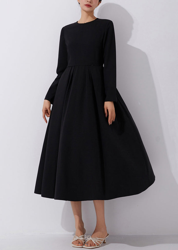 French Black Zippered Nail Bead Long Dresses Fall AM1017 Genistyle Shop