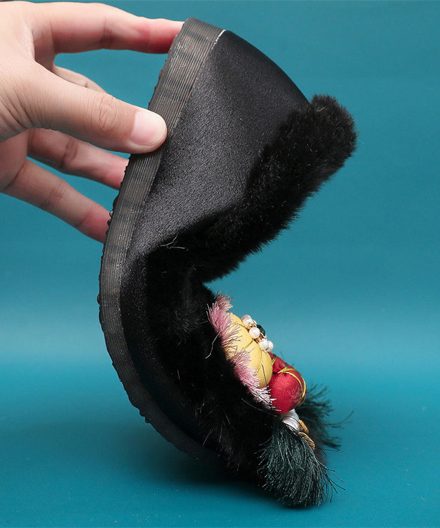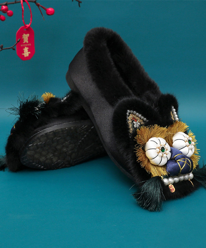 Indulge in sophistication with our Pink Retro Nail Bead Splicing Flat Shoes, luxuriously lined with fuzzy wool for a touch of elegance.