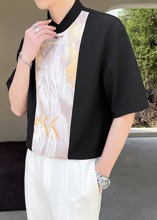 Beige Patchwork Half Stand Men Chic Collar T Shirt Sleeve