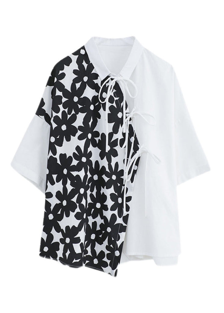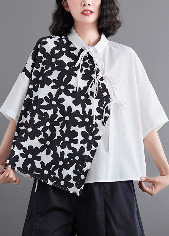 Fine White Peter Pan Collar Print Button Shirt Summer AC2061
