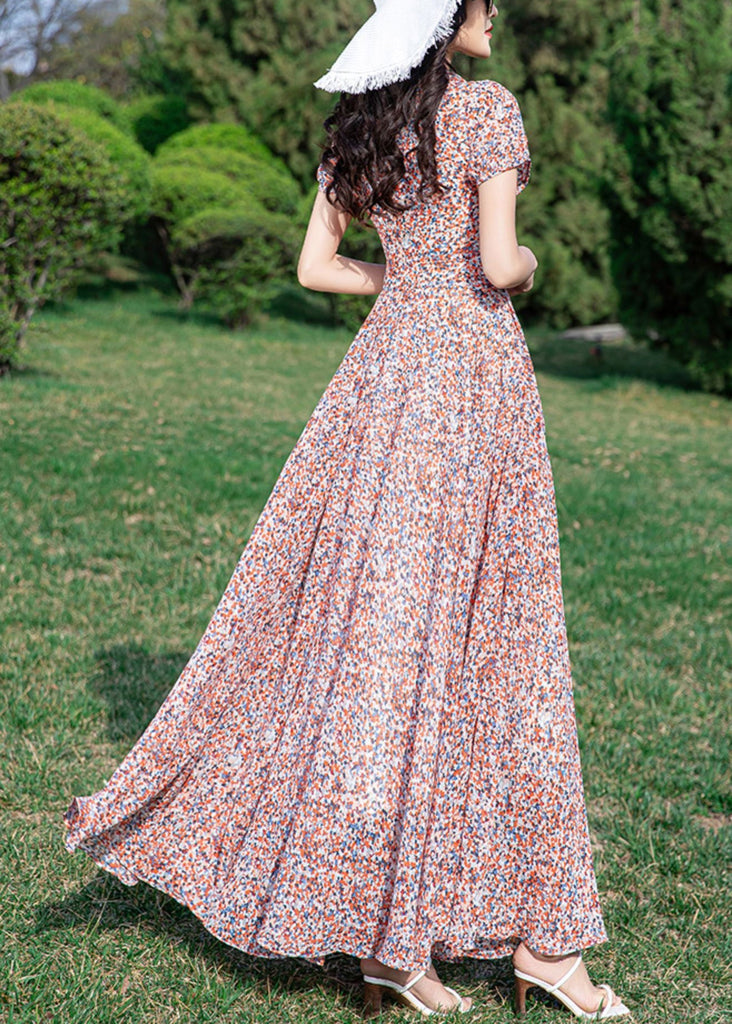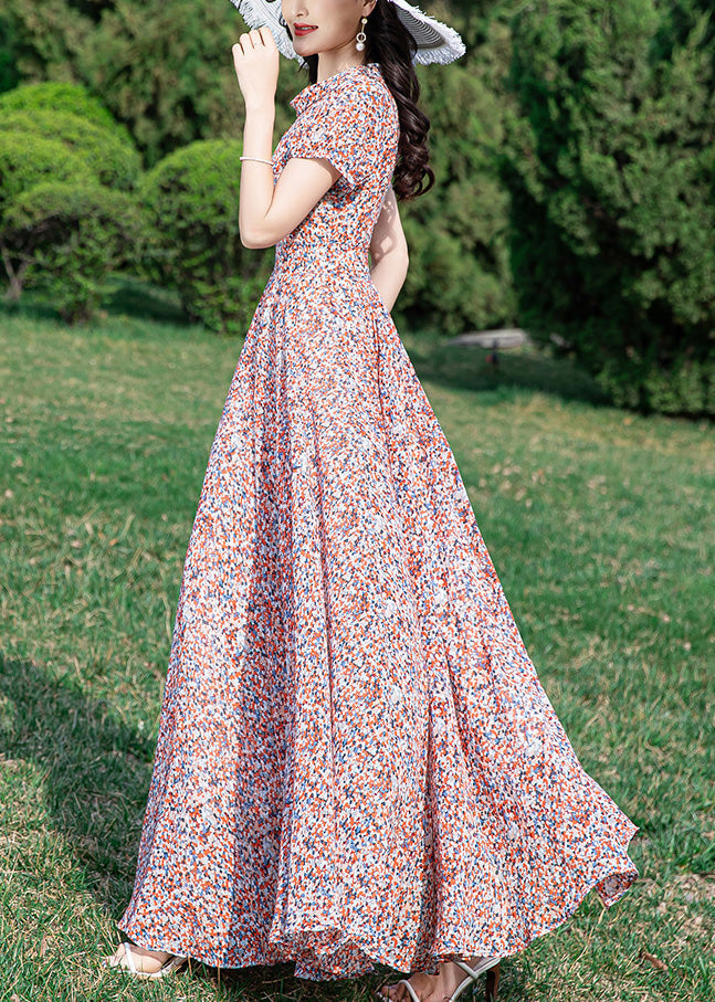 Loose Stand Collar Print Tunic Chiffon Long Dress Summer LY1710
