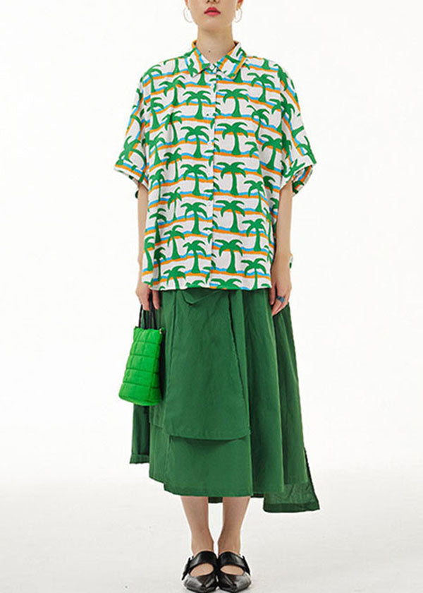 Modern Green Peter Pan Collar Print Cotton Shirts Top Summer