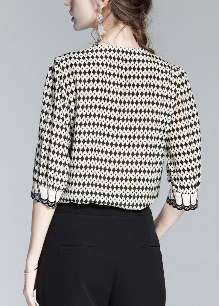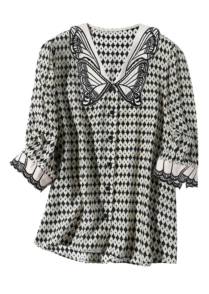 Modern Peter Pan Collar Print Silk Shirt Half Sleeve LY0130