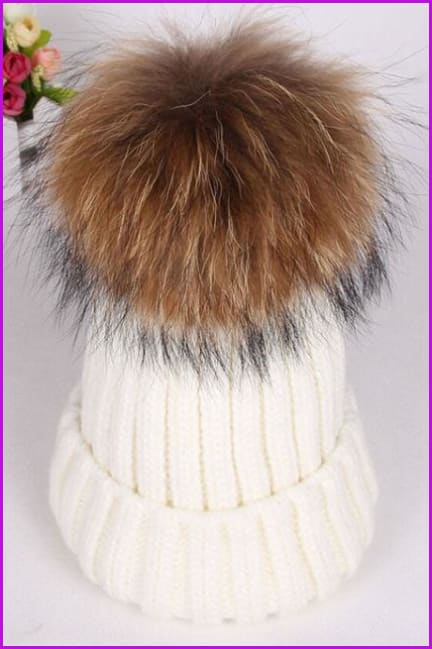 Raccoon Pom Knitting Hat DY474 - Furdela