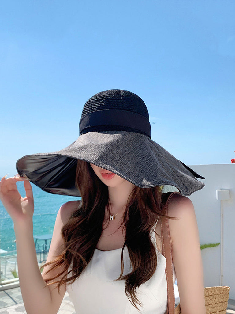Women Summer Colorblock Large Brim Sunproof Hat WE1002