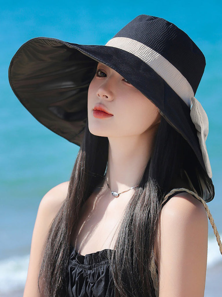 Introducing our Women Summer Colorblock Sunproof Bowknot Hat - a stylish and chic accessory for any summer outfit. With its wide brim, it provides ample protection from the sun's rays. Stay fashionably protected and elevate your look with this exclusive piece.