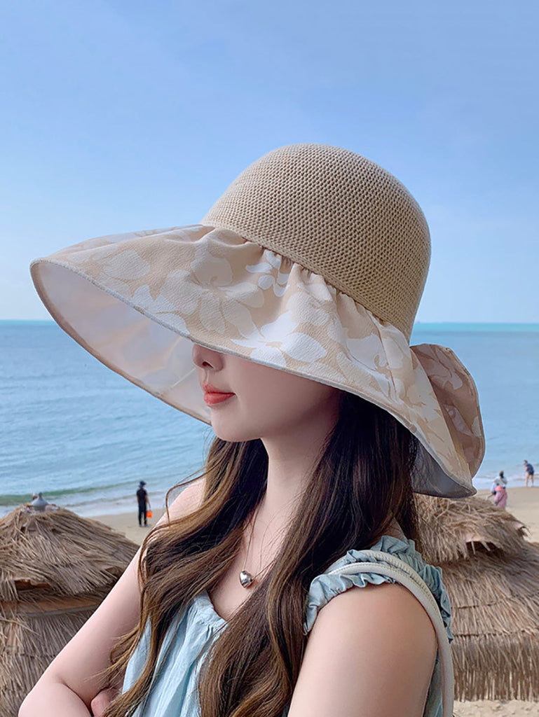 Women Summer Flower Spliced Bowknot Sunproof Hat AA1028