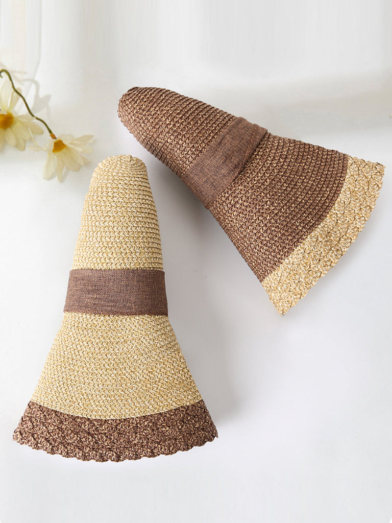 Women Summer Straw Colorblock Large Brim Sunproof Hat ZZ1028
