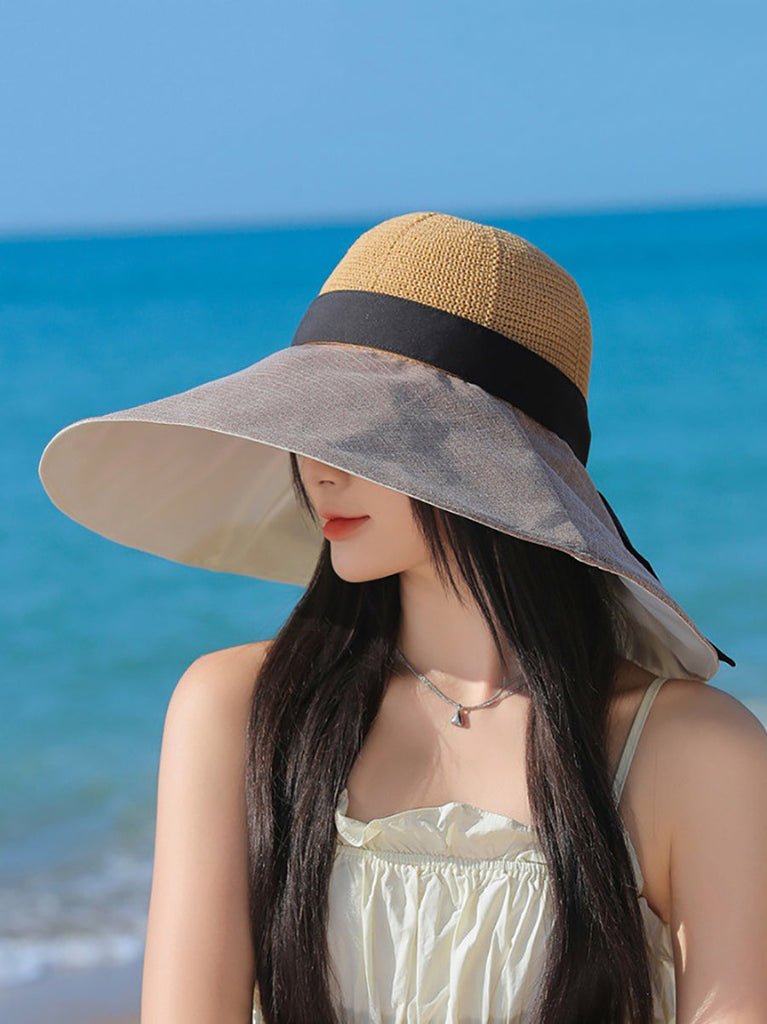Women Summer Travel Large Brim Sunproof Spliced Hat QW1036