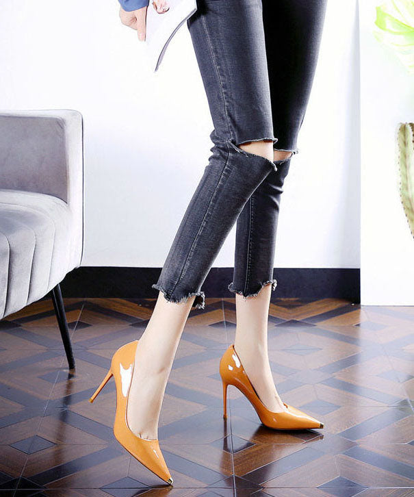 Elegant Pointed Toe Stiletto High Heels Orange Cowhide Leather