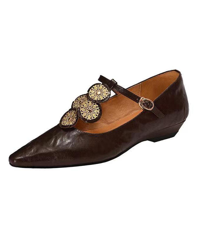 Unique Brown Wedge Heels Pointed Toe Buckle Strap DD1046