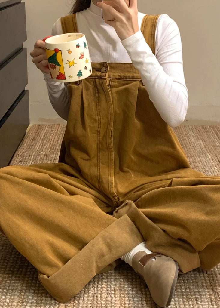 New Brown Button Solid Denim Jumpsuits Sleeveless