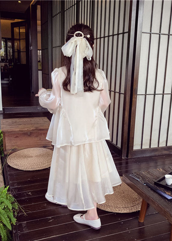 Art Apricot Sequins Button Silk Kids Shirts And Maxi Skirts Two Pieces Set Spring