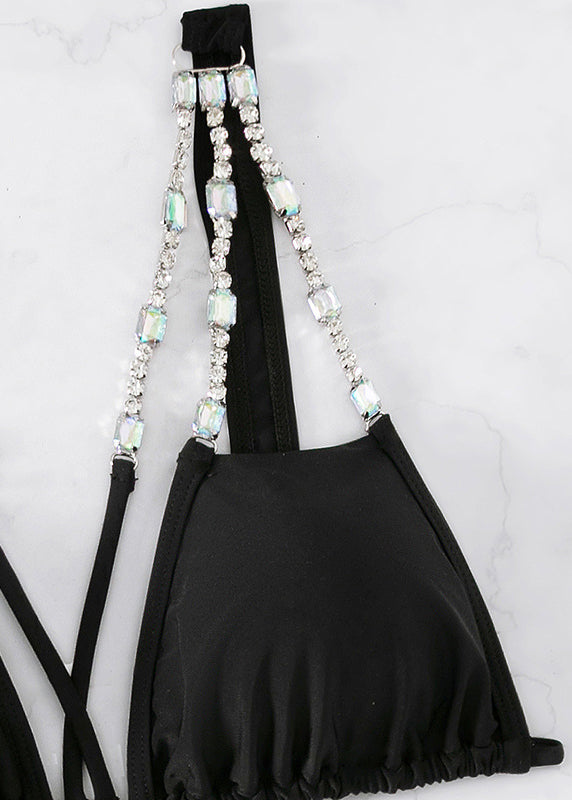 Club Black Backless Zircon Lingerie Set