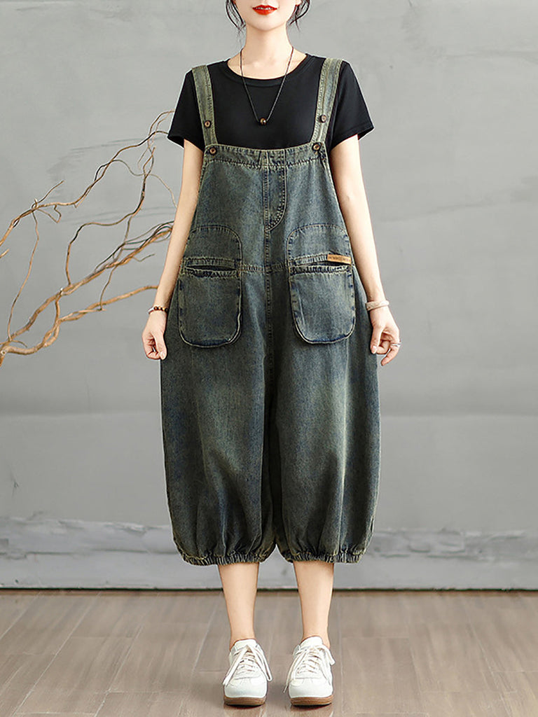 Jumpsuits Women Cropped Denim Pure Color Worn Summer
