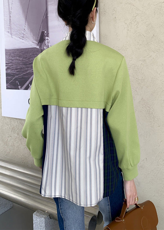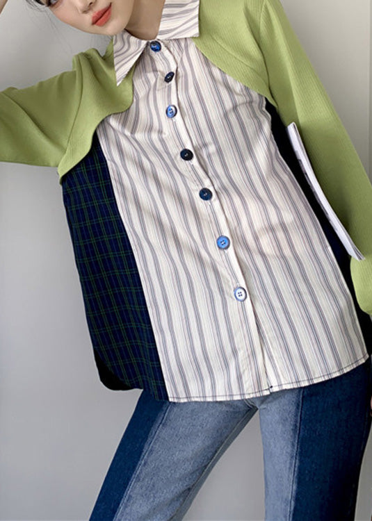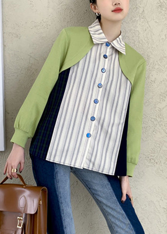 Art Peter Pan Collar Striped Patchwork Button Shirts Long Sleeve