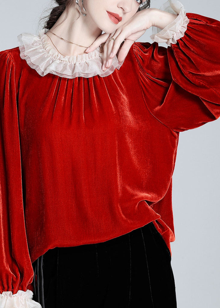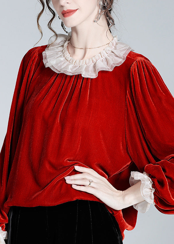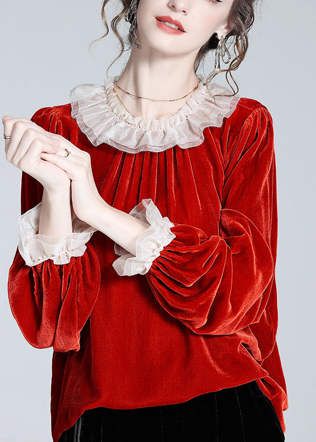 Boho Mulberry O-Neck Floral Velour Tops Long Sleeve LY0127