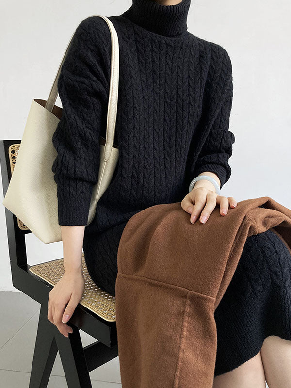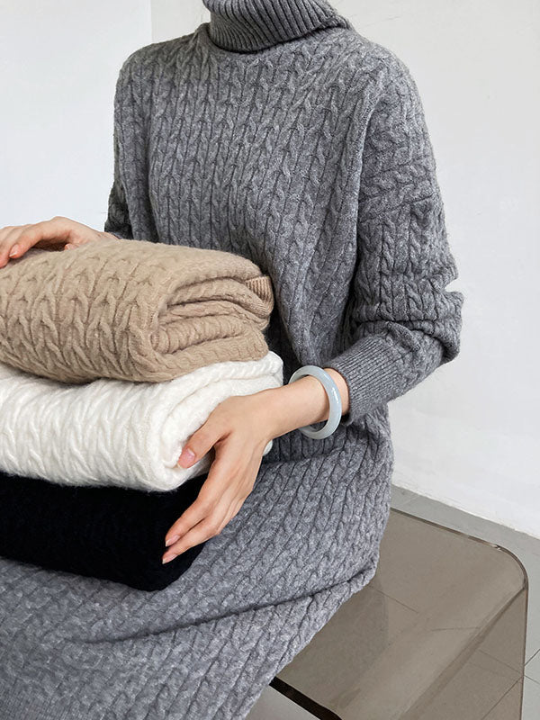 Casual Grey High-Neck Long Sleeve Twist Knit Dress AN1053 Genistyle Shop