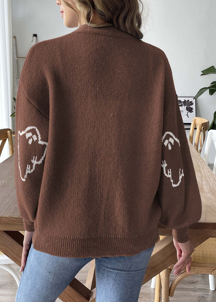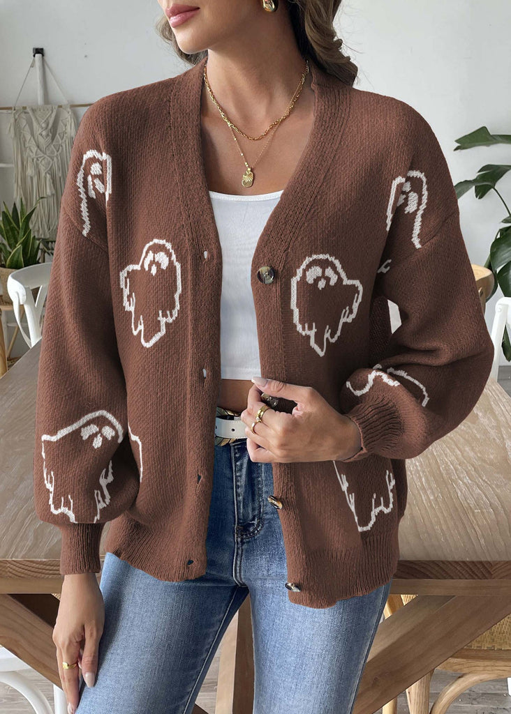 Coffee Button Patchwork Knit Coats Long Sleeve AE1005