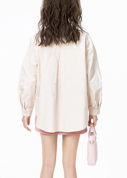 Italian Apricot Peter Pan Collar Print Button Cotton Shirt Long Sleeve