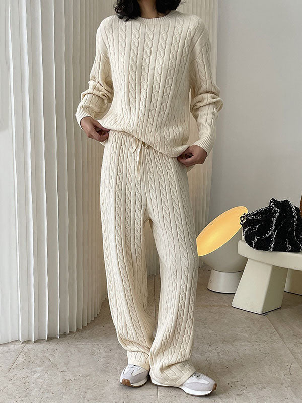 Simple Grey Round-Neck Long Sleeve Jacquard Twist Knit Top AN1060
