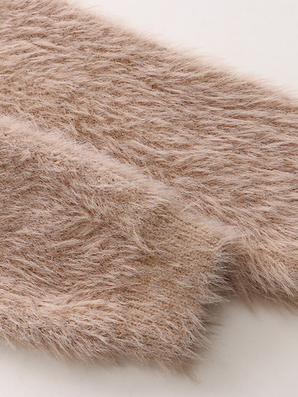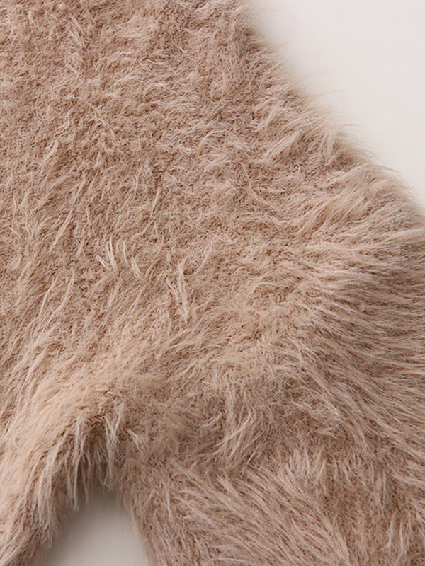 Simple Loose Coffee Round-Neck Long Sleeve Mohair Knit Top AN1062