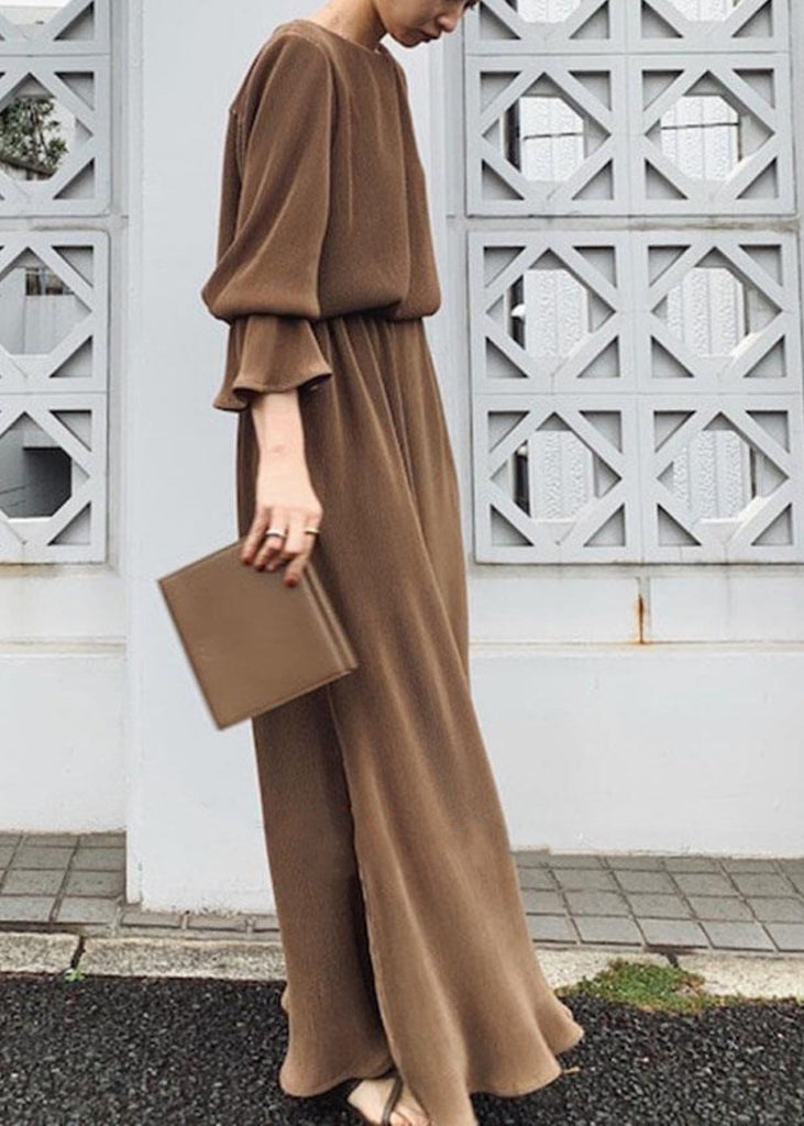 The Solid Split Long Sleeve Round Neck Casual Maxi Dress Chocolate LC0024 was built with people like you in mind. Something to keep you happy. Every. Single. Day.