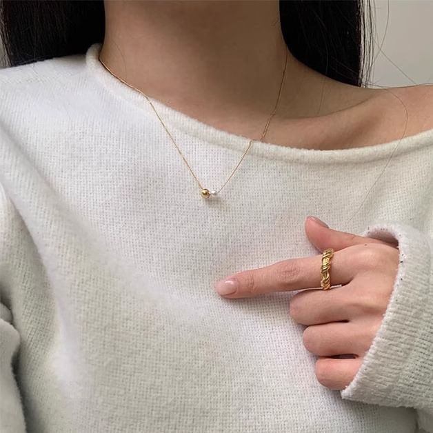 925 Sterling Silver Faux Pearl Ball Necklace