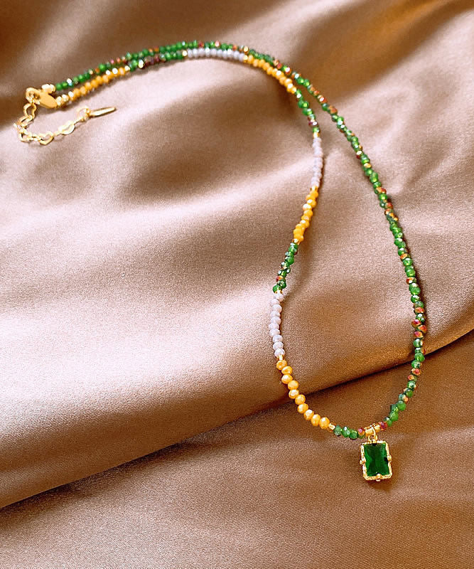 Boho Colorblock Sterling Silver Overgild Beading Gem Stone Pendant Necklace AB1075