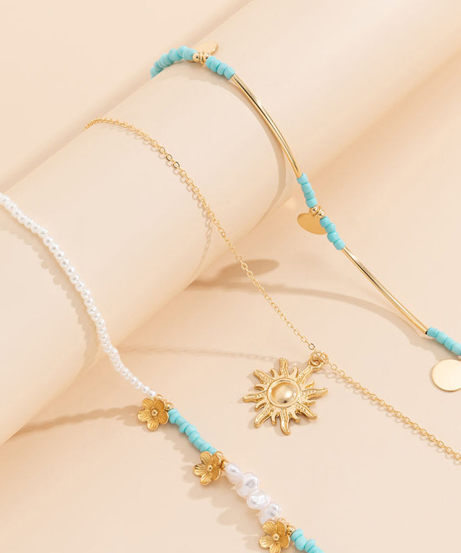 Boho Sterling Silver Alloy Beads Floral Planchet Three Piece Se Pendant Necklace RA027