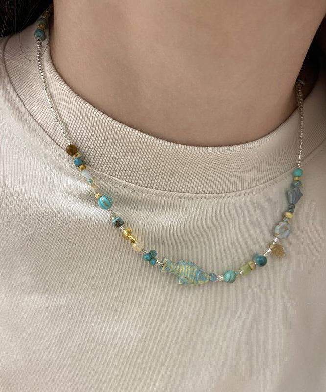 Craft your own unique style with our exquisite DIY Colorblock Beading Little Fish Gratuated Bead Necklace.