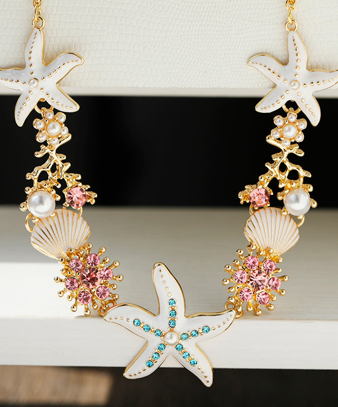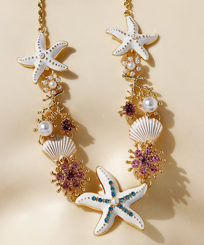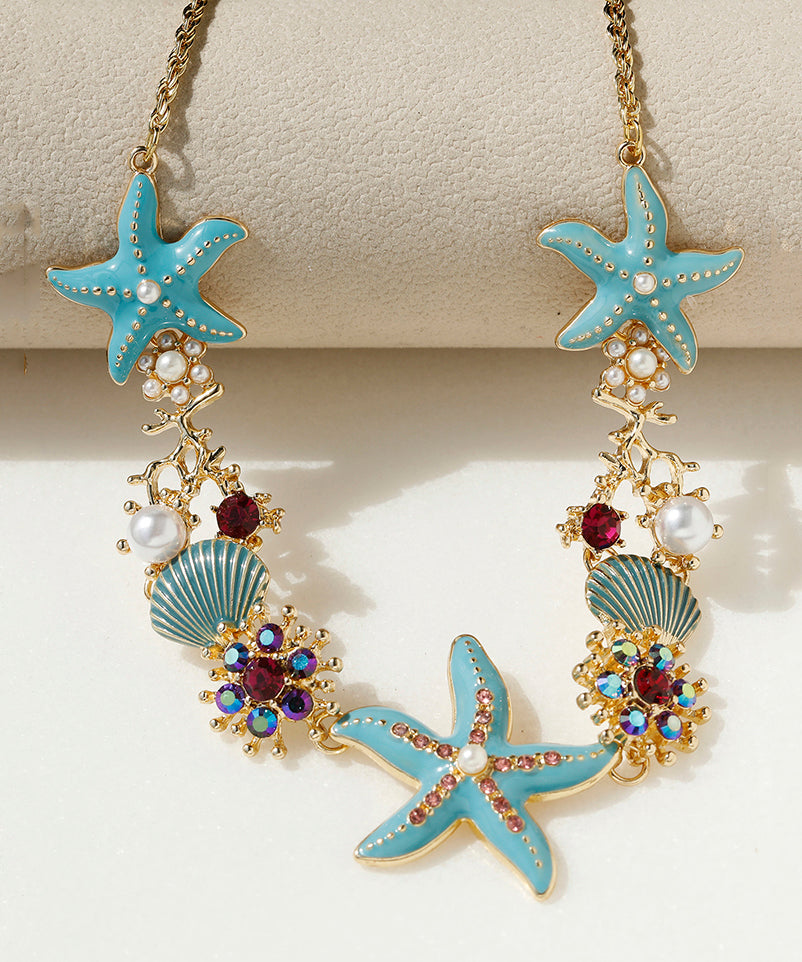Luxurious Fashion: Sterling Silver Overgild Enamel Necklace adorned with Blue Zircon and Shell Pearl Pendants