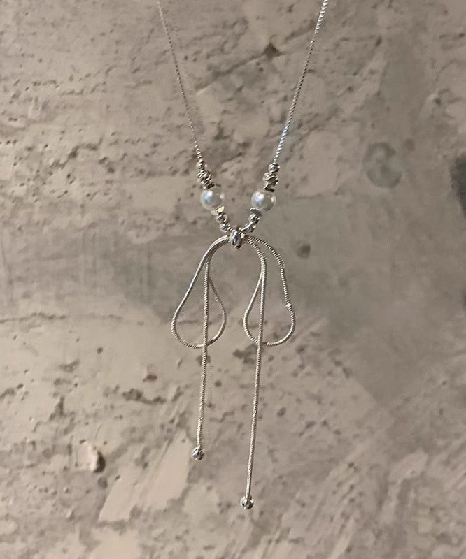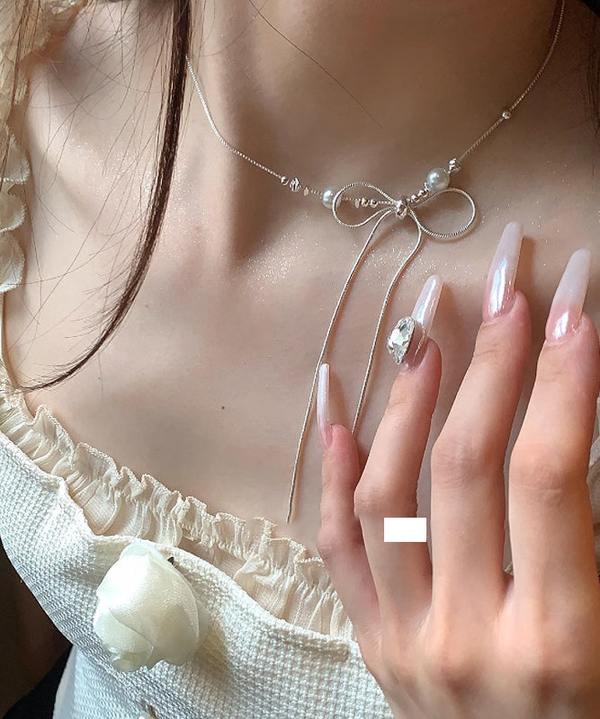 Fine Silk Alloy Pearl Bow Pendant Necklace YU002