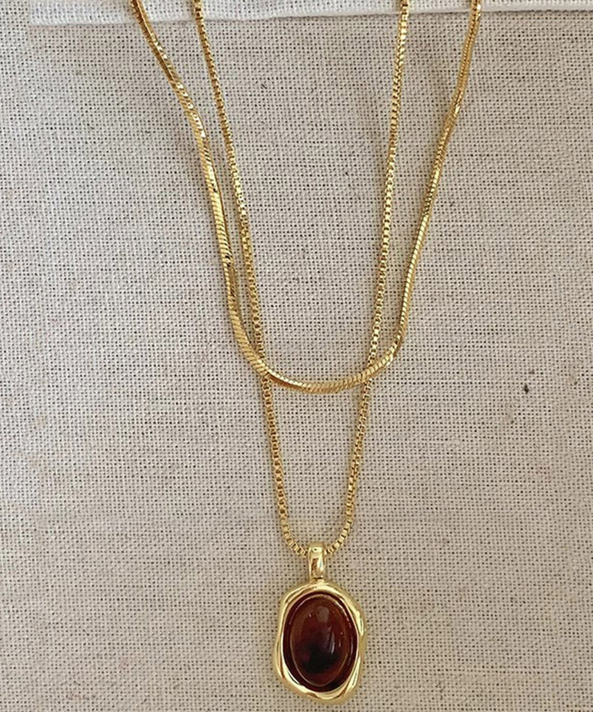 Necklace Piece Set Pendant Two Overgild Style Copper Amber Gold
