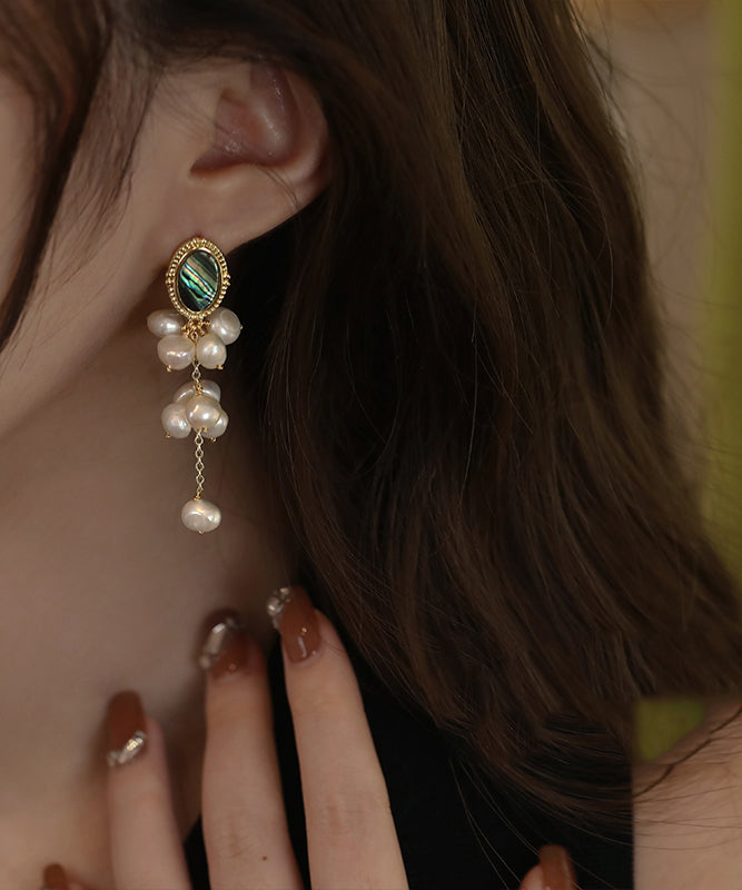 Original Design Gold Sterling Silver Alloy Pearl Tassel Drop EarringsFine Silk Sterling Silver Broken Silver Gypsophila Necklace ET009 ABC