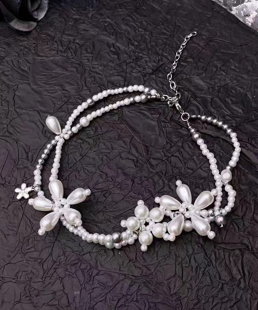 Exquisite design of ivory-hued floral pearls delicately adorning the lustrous white alloy pendant necklace. Sophisticated and chic, this statement piece exudes luxury and elegance, embodying the essence of the finest art and fashion.