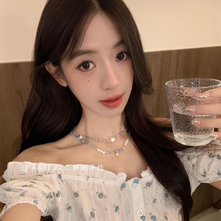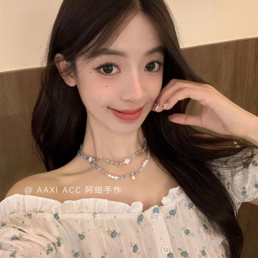 Star / Faux Pearl Beaded Necklace