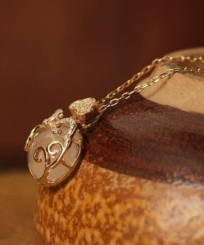 This exquisite pendant necklace boasts a lavish blend of vintage gold and sterling silver, adorned with overgild zircon and a stunning jade pendant.