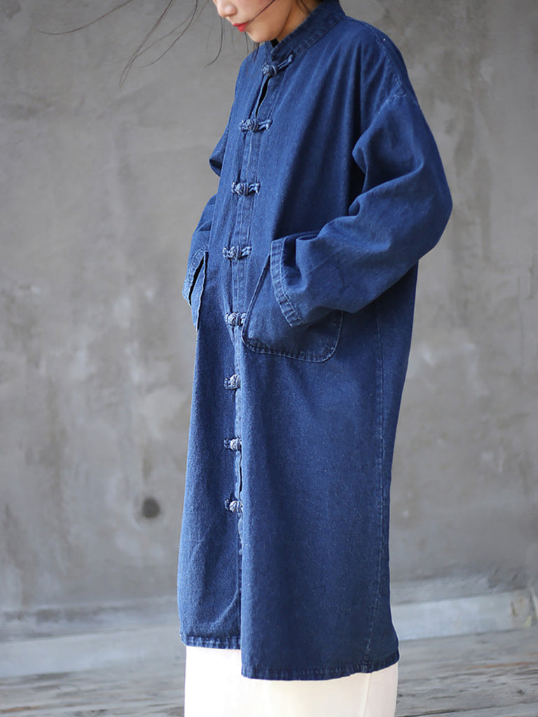 Women Autumn Casual Solid Pocket Denim Robe Coat AK1032