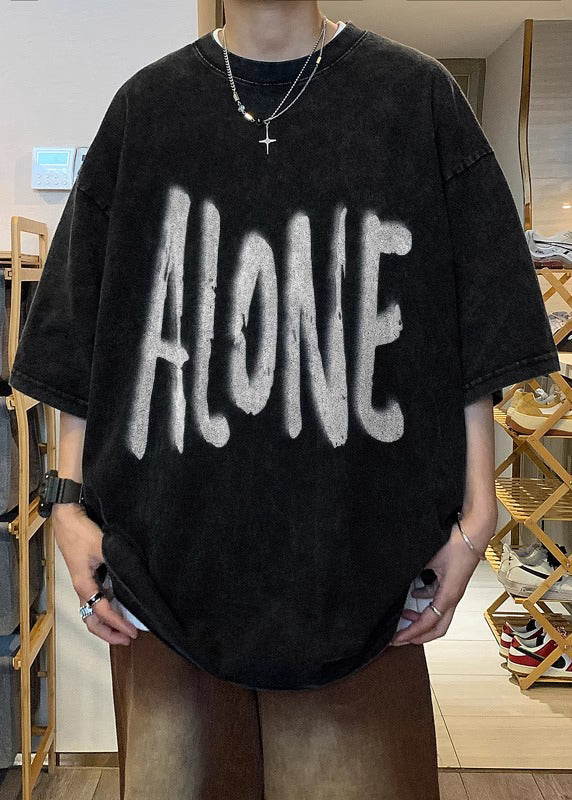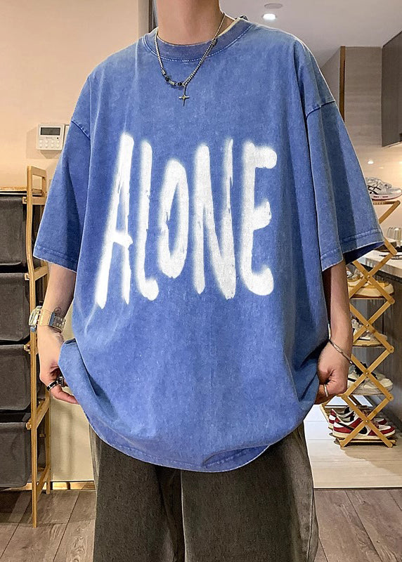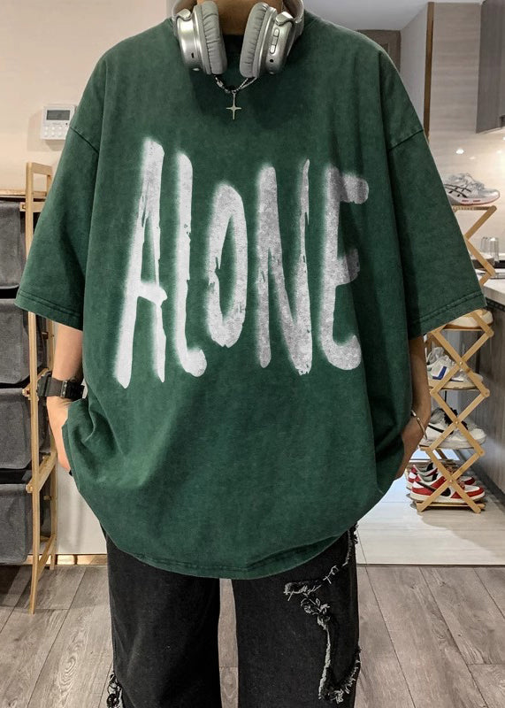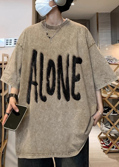 Plus Size Khaki O Neck Print Cotton Men T Shirt Half Sleeve
