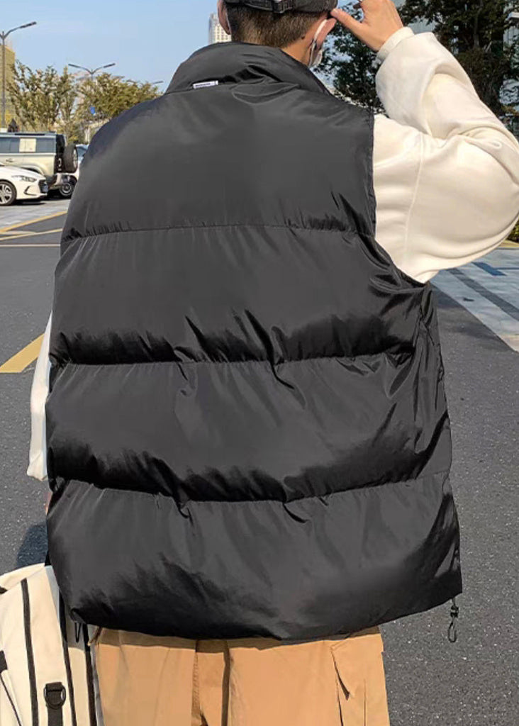 Plus Size Black Stand Collar Zip Up Cotton Filled Mens Waistcoat Sleeveless EQ029