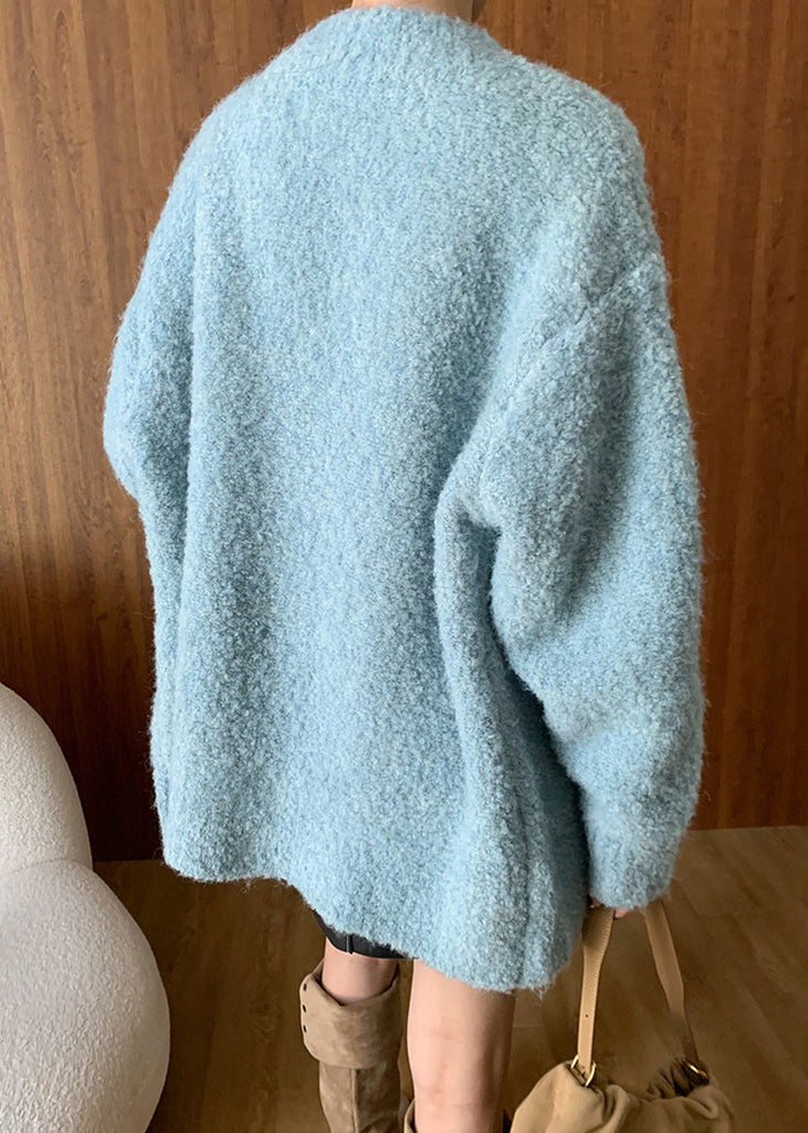 Plus Size Blue V Neck Button Woolen Cardigans Fall WD005