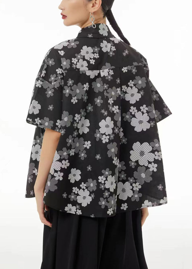 Plus Size White Peter Pan Collar Print Cotton Shirts Summer LC0122