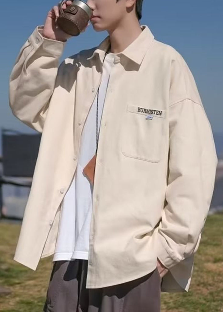 Plus Size Black Peter Pan Collar Pockets Cotton Mens Thin Coats Spring