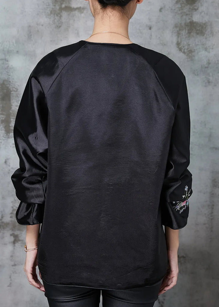 Black Chinese Style Silk Coat Embroidered Spring JK1058